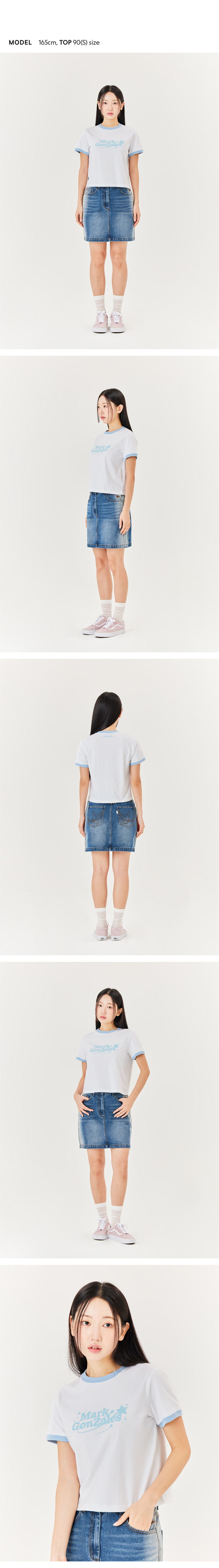 - 女裝短版圓領短袖Ringer T恤,配以標準版型