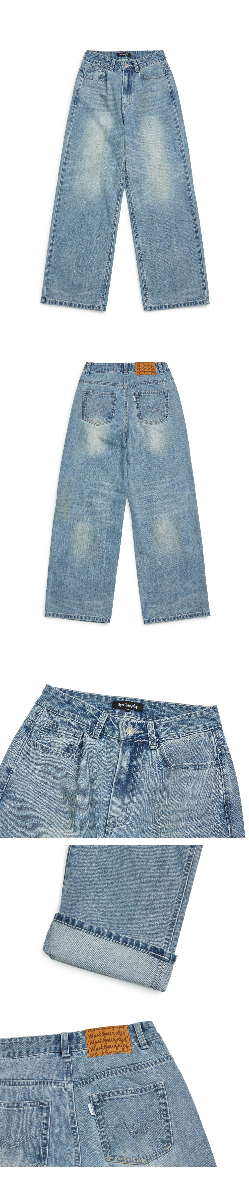 - 採用100%棉及12-13oz高密度丹寧布料的半寬鬆版型牛仔褲